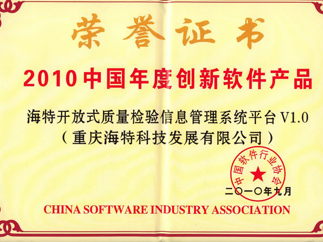 2010年9月3日,“2010中國軟件產(chǎn)業(yè)發(fā)展暨企業(yè)創(chuàng)新高峰會”在南京金陵會議中心揚子廳舉行。我公司“海特開放式質量檢驗信息管理系統(tǒng)平臺(TIS)V1.0”在此次會議上獲得了中國十大創(chuàng)新軟件產(chǎn)品的殊榮。
