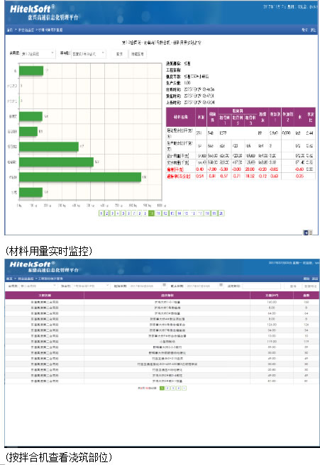 拌合站是施工工藝控制的重要一環(huán),本系統(tǒng)通過物聯(lián)網(wǎng)技術(shù)實現(xiàn)對拌合樓拌和用量、拌和時間的實時采集,形成拌合樓監(jiān)控系統(tǒng)大數(shù)據(jù)庫,對采集的數(shù)據(jù)進行智能分析可實現(xiàn)拌和實時監(jiān)控、拌合站產(chǎn)能分析、拌和異常告警等功能,還支持與物資管理系統(tǒng)、施工控制系統(tǒng)、試驗室管理系統(tǒng)集成,實現(xiàn)從材料入場到施工驗收全過程的集成管理,達到控制成本、提升質(zhì)量的管理目標(biāo)。
